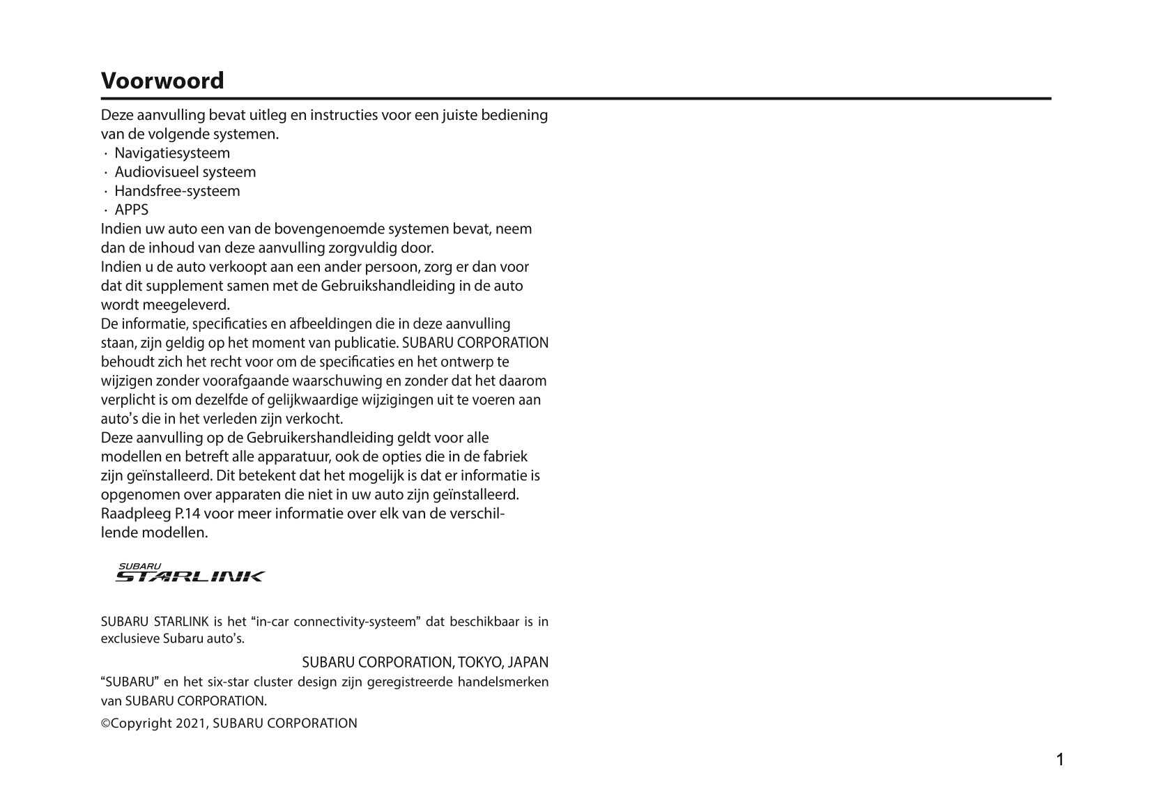 2024 Subaru XV e-BOXER Infotainment Handleiding | Nederlands